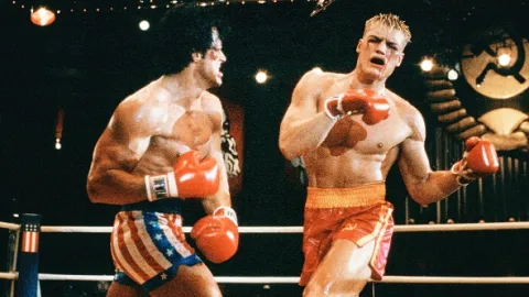 Rocky Balboa zápasí v Moskvě. Zpočátku má jeho soupeř navrch, nakonec ale Rocky sebere všechny své síly a zvítězí. Je ale zcela vyčerpán a stane se…