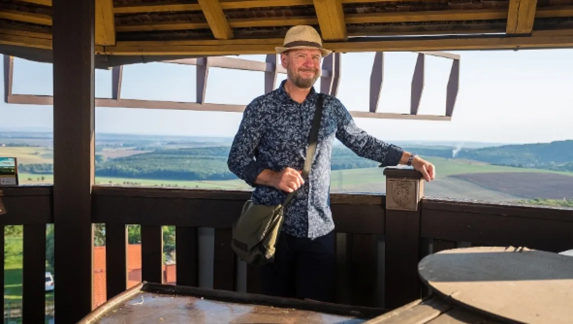 Ačkoliv zeměpisné určení Moravské Toskánsko zatím nenajdete v oficiálních mapách, stále častěji se tak označuje část Moravy táhnoucí se od Velkých Bílovic k severovýchodu až někam ke Koryčanům. Některé vinařské obce v tomto regionu už Václav navštívil v minulých putováních. Dnes se podívá na vinice od Strážovic až do Kyjova. Krajina tady připomíná obří mořské vlny. O charakteru natáčení asi nejlépe vypovídá, že nadšený tentokrát byl nejen Václav ze špičkového Rulandského šedého, které se zde rodí, ale především hlavní kameraman cyklu Vojtěch Dvořák. Měkké slunce babího léta úchvatně tančí po remízcích a zakroucených řádcích vinohradů. Místo plachetnice se na hřbet jedné z vln vyhoupne silueta větrného mlýna. Kraj si pomalu obléká první podzimní barvy. Václav se podívá nejen do největšího moravského sklepa vytvořeného důlní ražbou, ale leitmotivem dílu budou nejrůznější formy moderního umění zasazené do krajiny: od kaplí a křížové cesty, až po jeden z největších souborů slunečních hodin v Evropě. A skončíme v historickém Kyjově, tedy v centru stále živého moravského folkloru.