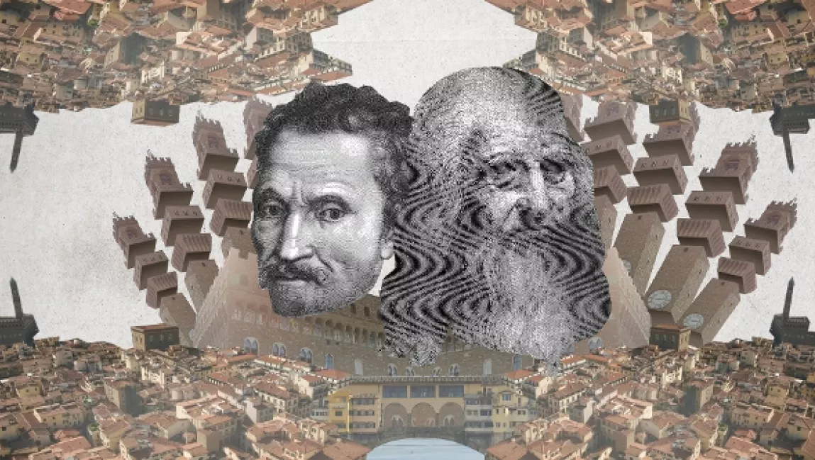 Michelangelo Buonarroti byl velký introvert, naopak Leonardo Da Vinci byl komunikativní. Mladší pracoval zásadně sám, starší byl neustále obklopen pomocníky. Oba pocházeli z venkova a toužili po uznání. Byli to nejspíš vůbec první skuteční umělci. Pomyslného výbušného materiálu pro pořádný duel bylo mezi nimi víc než dost.