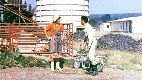 Už to vypadá, že oba pánové, Evžen Huml (J. Sovák) a Bohouš Císař (J. Kemr), kteří řízením osudu sdílejí v idylické vesničce společnou střechu nad …