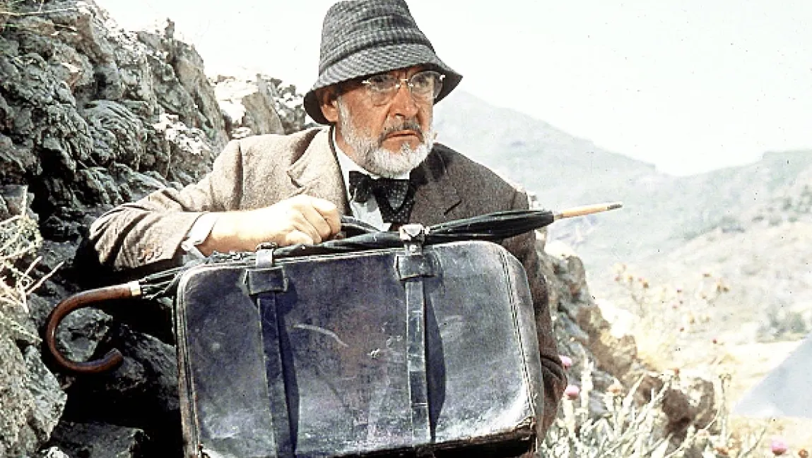 Píše se rok 1938 a Indiana Jones působí jako učitel archeologie na univerzitě. Jednoho dne se setká s podnikatelem a milovníkem umění, Walterem Donovanem, který mu oznámí, že při hledání Svatého grálu se ztratil jeho otec. Indiana Jones se ihned vydává na místo posledního působení otce, do Benátek. Tady se setkává s německou doktorkou Elsou, která ho přivede do místní knihovny, kde se otec Indiany ztratil. Indiana zde velmi brzy najde hrobku rytíře z první křížové výpravy (knihovna je ve skutečnosti starým kostelem) a v ní další stopu, která má hledače přivést k místu, kde je kdesi v poušti schován Svatý grál. To už však Indianu a Elsu pronásledují neznámí útočníci. Indiana se jich zbaví a od posledního z nich se dozví, že se jedná o strážce Svatého grálu. Další informaci, kterou od strážce grálu Indiana získá, je místo, kde je nacisty držen archeologův otec. Indiana se s Elsou vypraví do Rakouska ho osvobodit. Otce najde na starém hradě, ale zde se ukáže, že Elsa je ve skutečnosti ve službě nacistů a že jí jde o notes, který Indiana dostal poštou od svého otce. V notesu se totiž skrývají důležité poznámky, které mají pomoci při získání Svatého grálu. Indiana o notes nechtěně přijde, když mu ho zabaví nacistický důstojník. Nacistům právě o tento notes celou dobu šlo. Zdá se, že Indiana a jeho otec prohráli a že jim hrozí už jen smrt za strany nacistů. To však není pravda. Indiana se svým otcem z hradu, kde jsou nacisty drženi, dokážou utéct. Ihned se vypraví do Berlína, kde vyhledají Elsu (dostala notes od důstojníka) a notes jí opět vezmou. Následně z Berlína uprchnou pomocí vzducholodě, letadla a auta, když se přitom musejí zbavit svých pronásledovatelů. Indiana a jeho otec pokračují na Střední východ, aby zde za pomoci svého přítele Marcuse grál našli. V patách jim však postupuje i nacistická výprava vedená německým plukovníkem, Walterem Donovanem a Elsou. Indiana se pokusí nepříjemných Němců zbavit, což vyvrcholí velkým soubojem mezi Indym a plukovníkem, při kterém plukovník zahyne. Nicméně obě výpravy se nakonec setkávají v jeskyni, kde je ukrytý Svatý grál. Je to Indy, kdo Grál skutečně najde. Při jeho získání zahyne zrádný a sobecký Walter Donovan i Elsa, která nepochopila, že osvícení a moc grálu není v jeho vlastnictví. Němci jsou zlikvidováni, grál zůstává v jeskyni a Indy se se svým otcem vypraví za dalším dobrodružstvím.