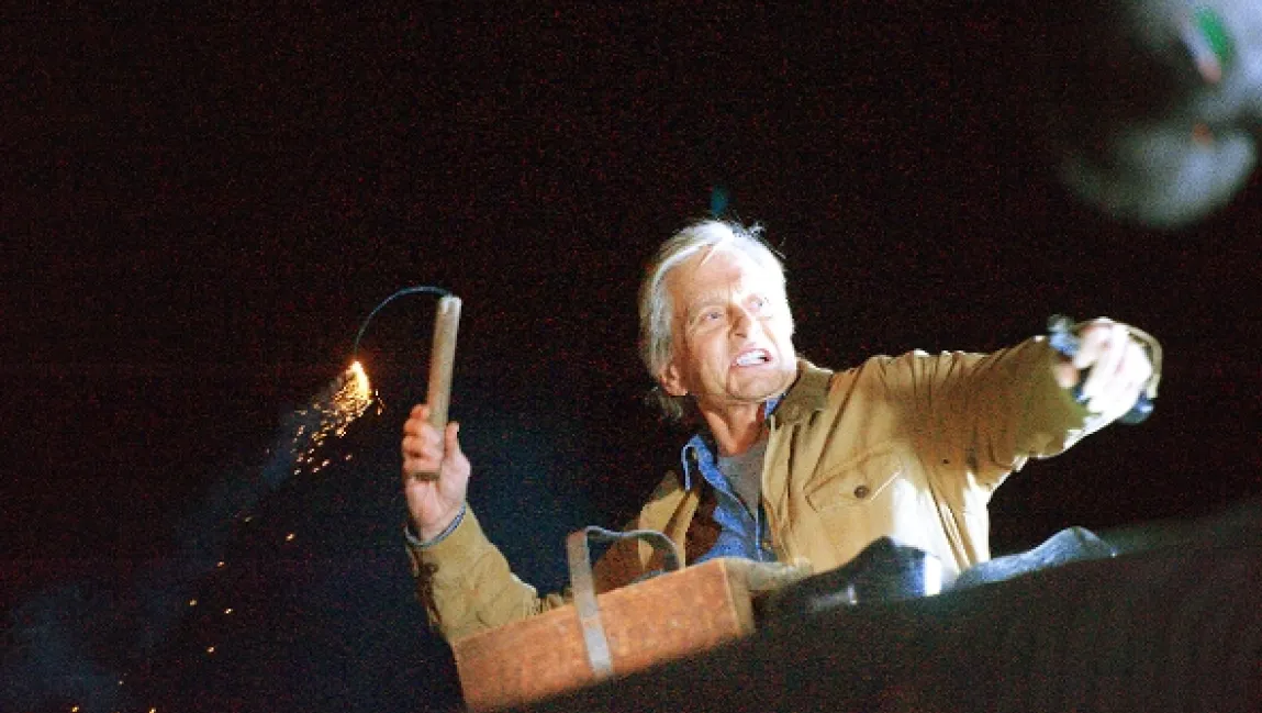 Thriller USA (2014). Bohatý obchodník a lovec Michael Douglas si najme mladého, ale zkušeného průvodce a stopaře, aby ho doprovázel na lovecké výpravě do těžko dostupných skalnatých hor v Mohavské poušti. Když naslepo vystřelí na pohyblivý terč ve vzdálených skalách, namísto zvěře zastřelí starého zlatokopa...