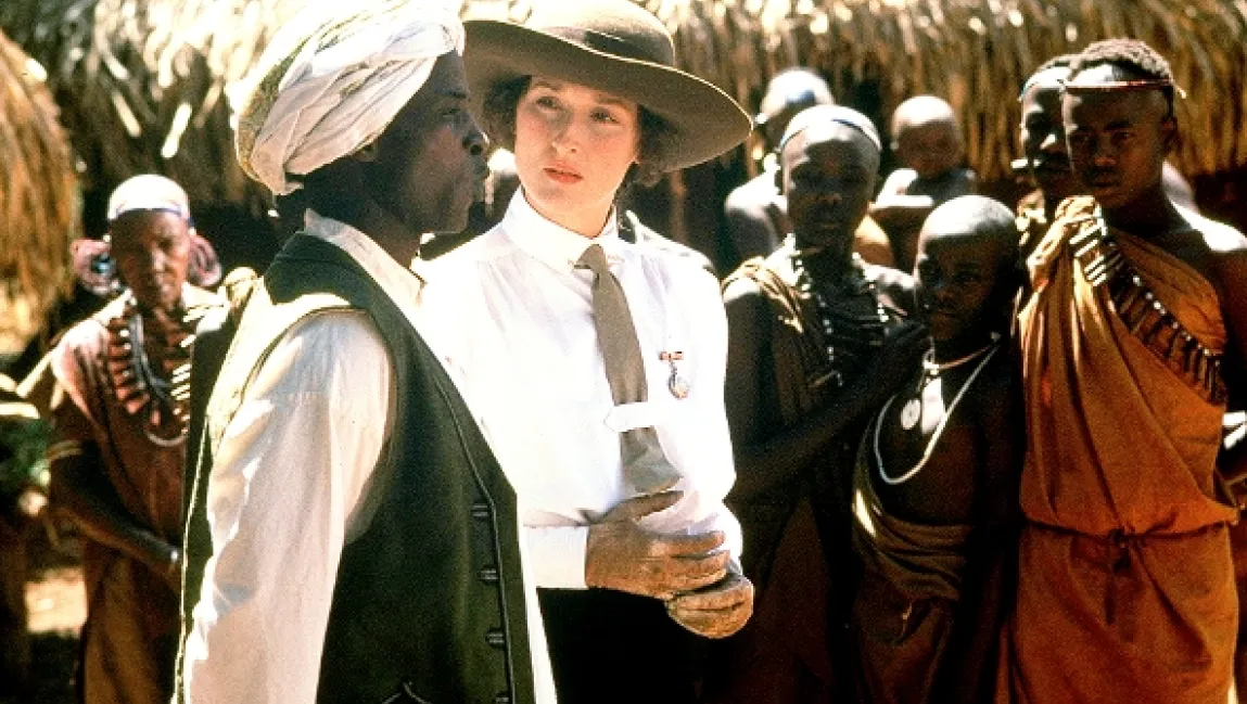 Milostný příběh je volnou biografií dánské spisovatelky Karen Blixenové a zachycuje její dlouholetý pobyt v africké Keni. Karen v Dánsku řekne bratrovi svého milence, baronu Broru Blixenovi, že se za něj provdá a dá mu peníze, aby koupil farmu v Africe. Roku 1913 Karen přijíždí do Keni a ve vlaku se poprvé setká s lovcem Denysem Finchem Hattonem. Už v den svatebního obřadu přichází první rozčarování. Bror bez rozloučení odjede na dlouhý lov, a navíc Karen zjistí, že manžel její peníze nepoužil na zřízení chovu krav, ale rozhodl se pěstovat kávu. Karen se seznamuje s prostředím, komunitou bělochů i domorodými vesničany. Při jedné z vyjížděk se opět setká s Denysem, který zasáhne, když je v pustině překvapena lvicí. Krátce nato se Karen od lékaře dozví, že ji manžel nakazil syfilidou. Její stav je natolik vážný, že se musí léčit v Evropě. Do Afriky se vrací až po válce. Keňa Karen stále víc fascinuje. V buši se probouzí její senzitivní duše, která čím dál víc trpí po manželově boku. Není divu, že se zamiluje do nezávislého a svobodomyslného Denyse, se kterým prožije nejkrásnější chvíle svého života. Krátké období štěstí je však vykoupeno tragédií...