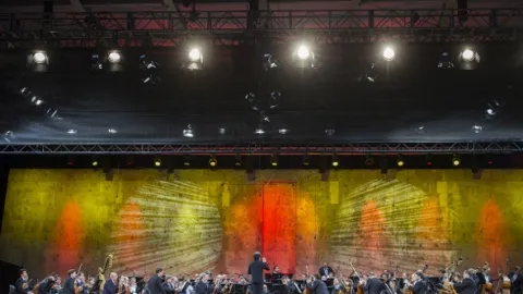 Z berlínské Lesní scény (Waldbühne) uslyšíte v podání Berlínských filharmoniků, které řídí venezuelský dirigent Gustavo Dudamel, skladby Roberta Sc…